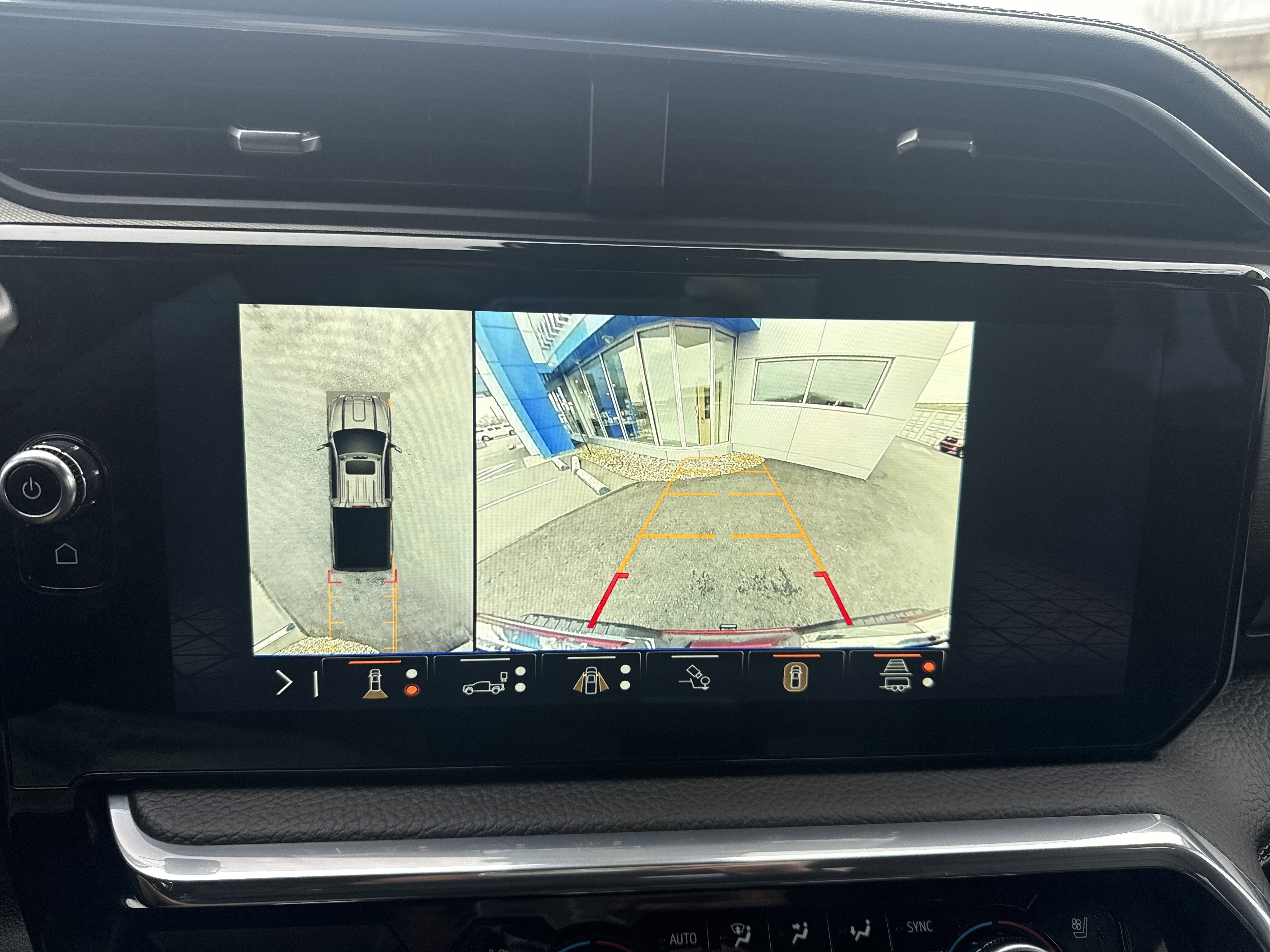 - Allows driver to see inside the cargo bed on the infotainment display to help with 5th wheel or gooseneck hitching and to check cargo